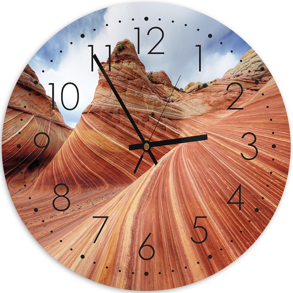 Informácie o výrobku "Zaoblené analógové nástenné hodiny s farebným rockovým dekorom"