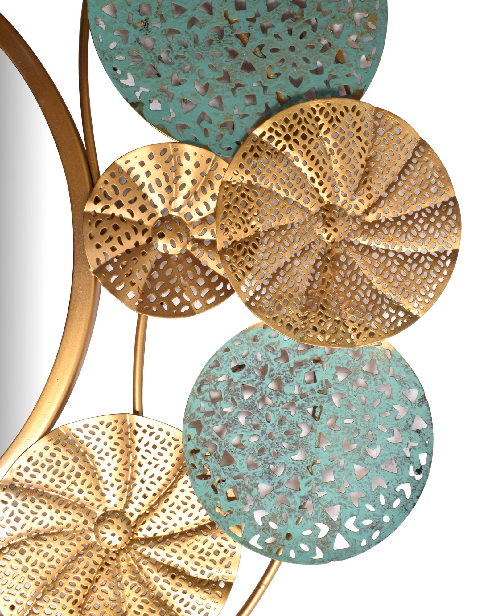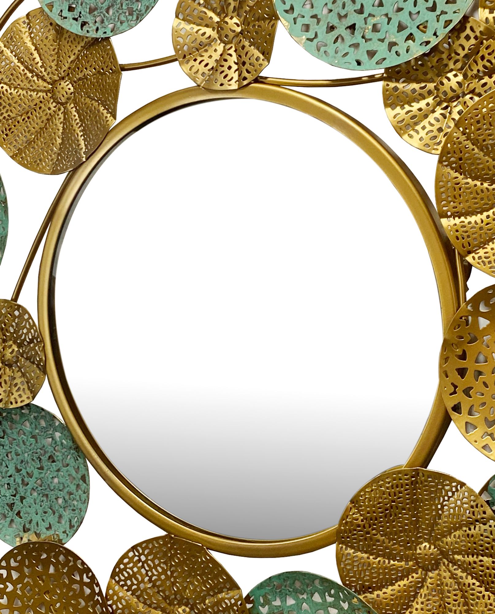 Okrúhle nástenné zrkadlo sklo a patinované zlaté železo | 80x77 cm | Zlatý rám so zelenou patinou