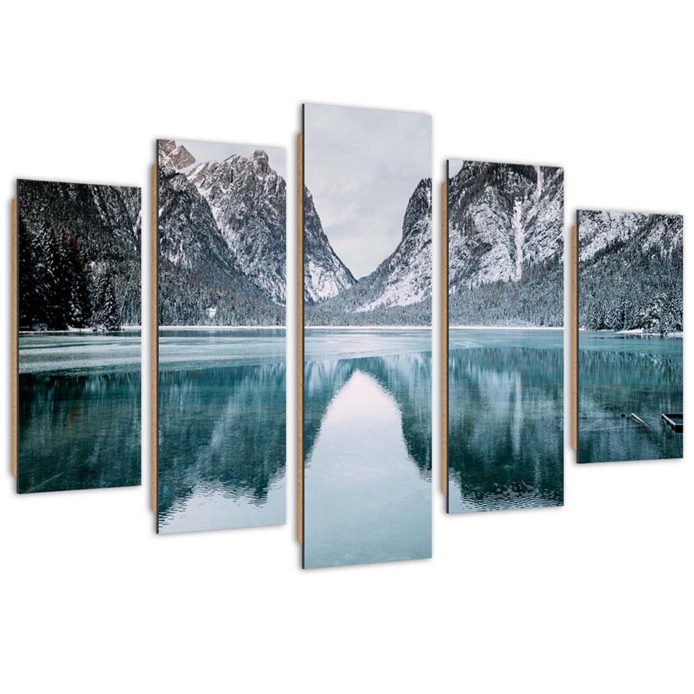 - Rám zložený z piatich kusov „horskej krajiny“ vytlačených na plátne HDF (high density fiber).