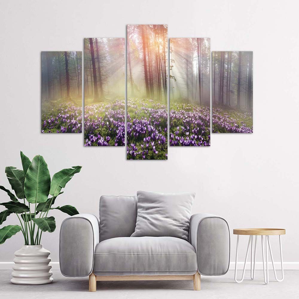 - Rám zložený z piatich kusov "krokusy na čistine" vytlačené na plátne MDF (medium density fiber).