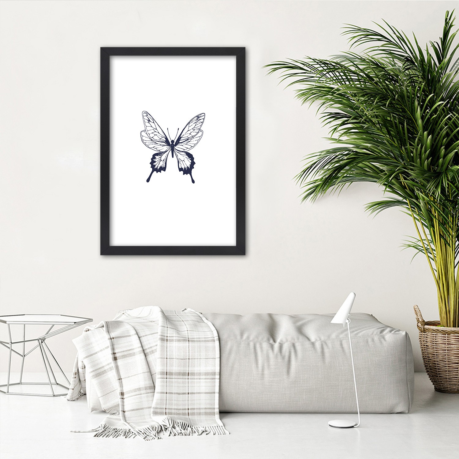 Informácie o výrobku "Picture in black frame, Drawn butterfly"