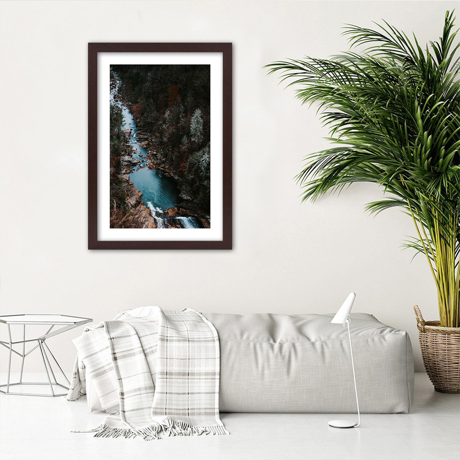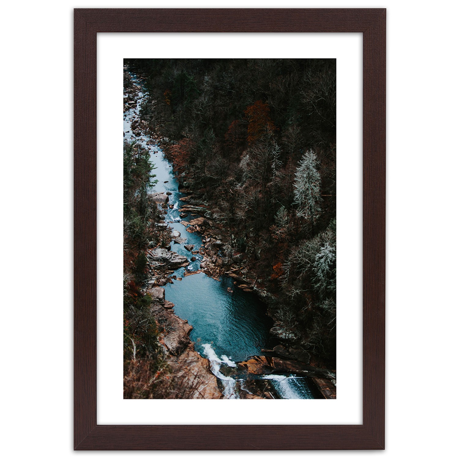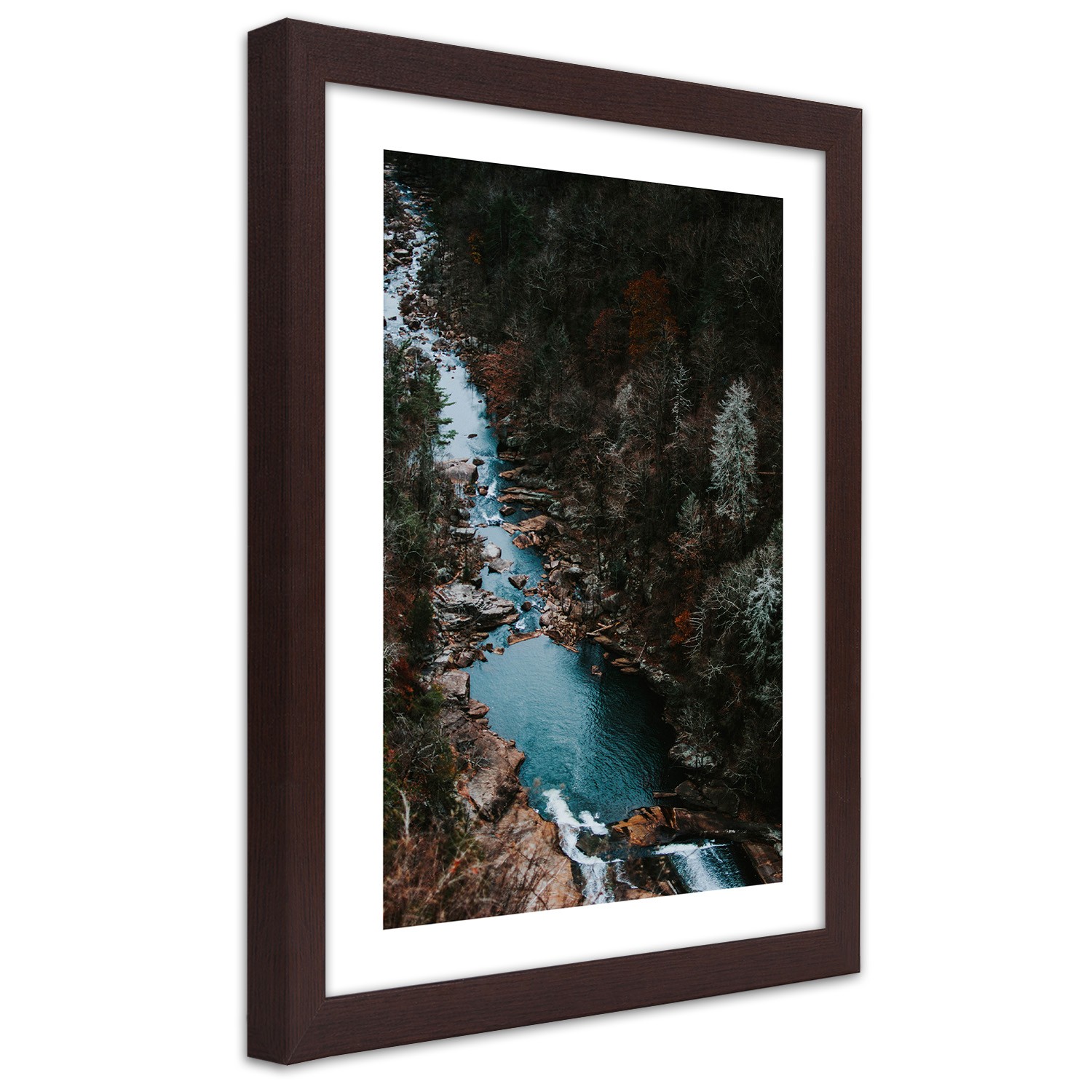 Picture in brown frame, River in the forest