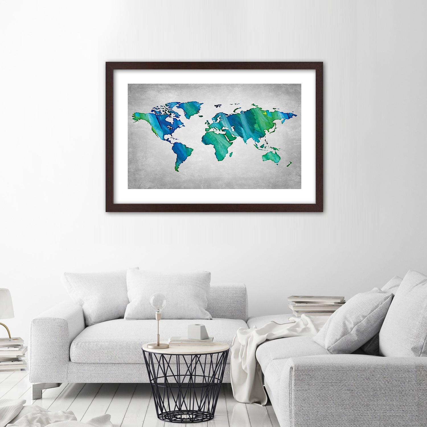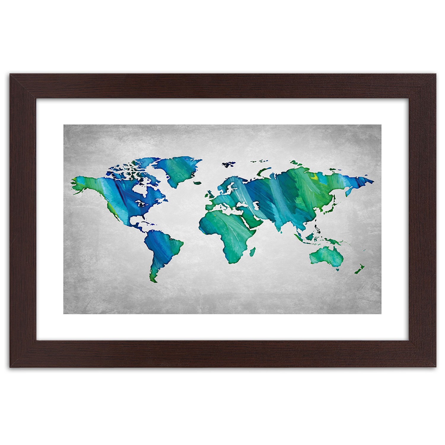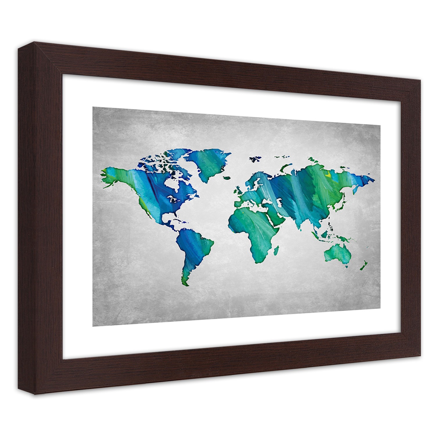 - Rám „Farebná mapa sveta na pozadí imitácie betónu“ vytlačený na saténovom papieri s rámom z MDF (vlákno strednej hustoty).