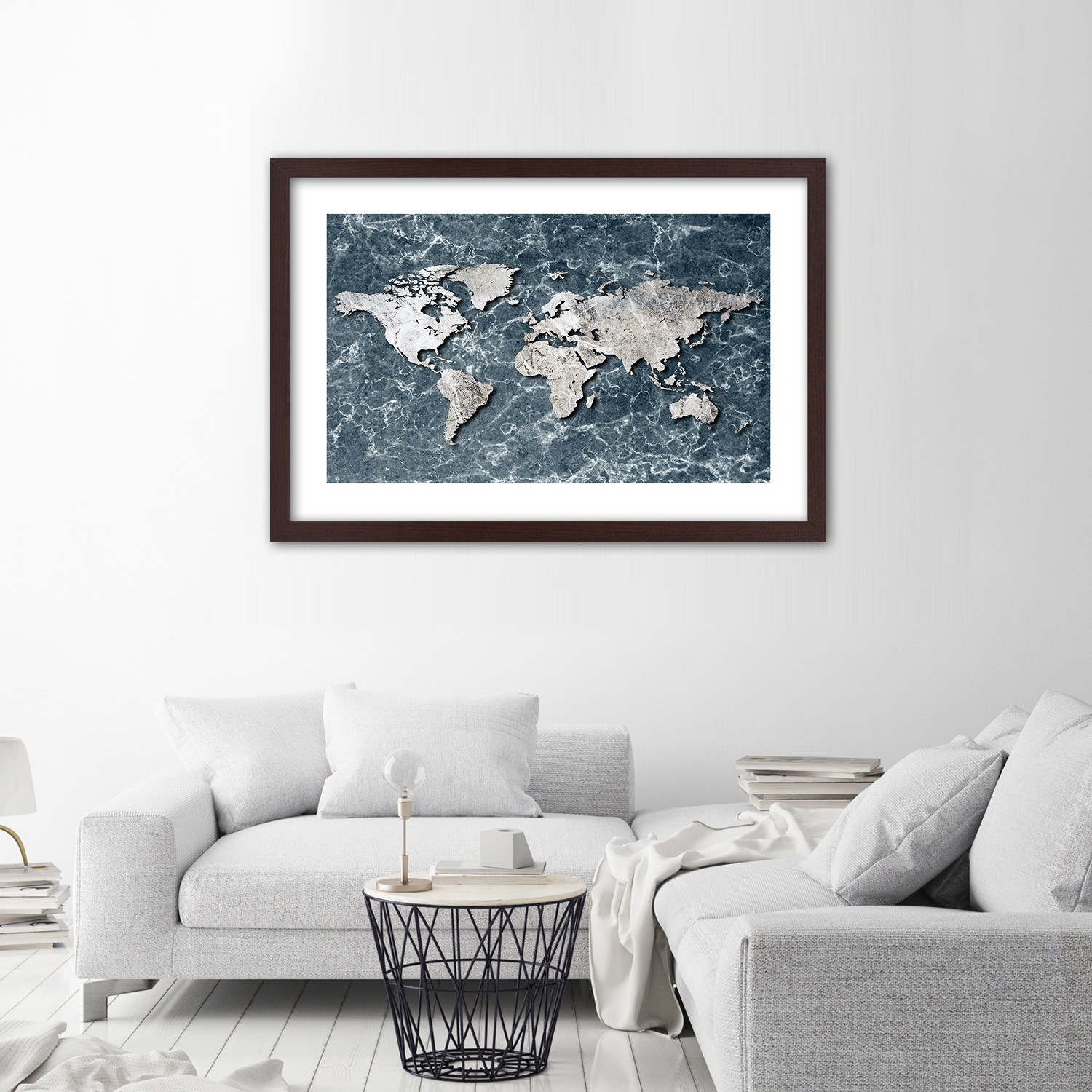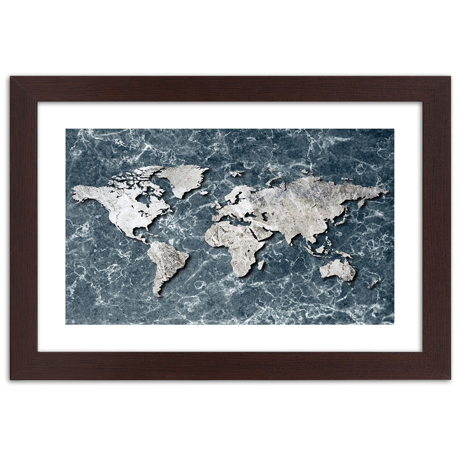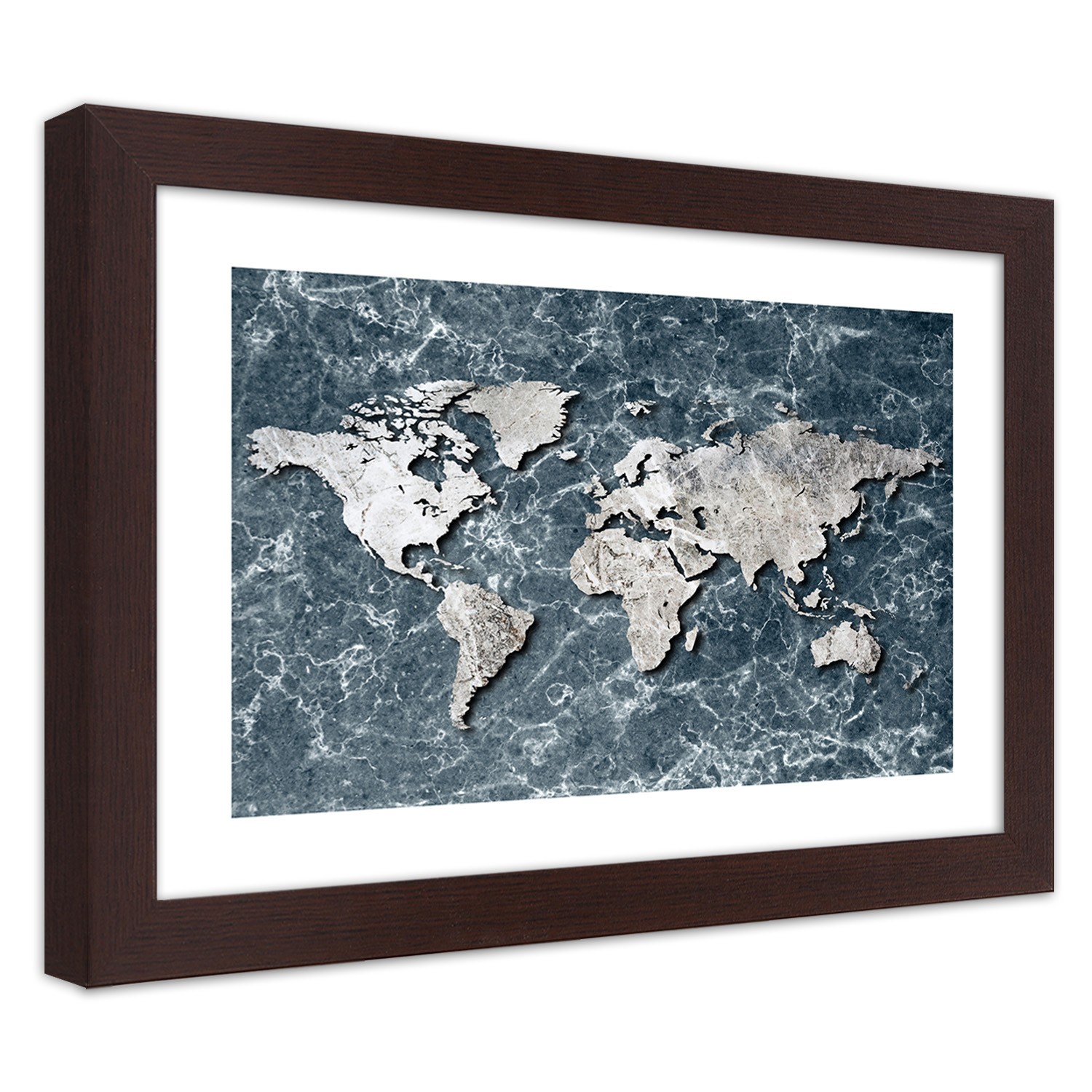 - Rám „Mapa sveta na imitácii mramoru“ vytlačený na saténovom papieri s rámom z MDF (vlákno strednej hustoty).