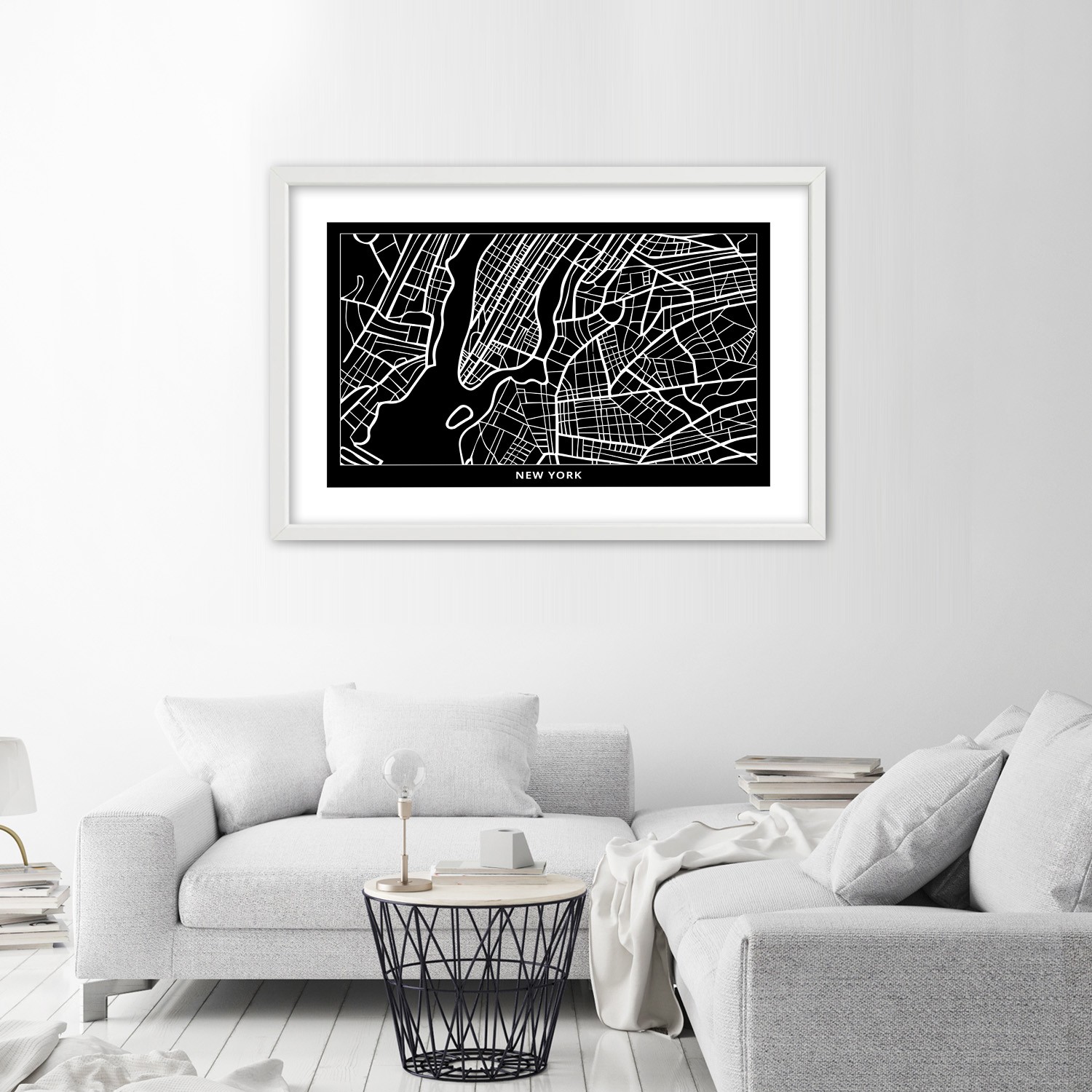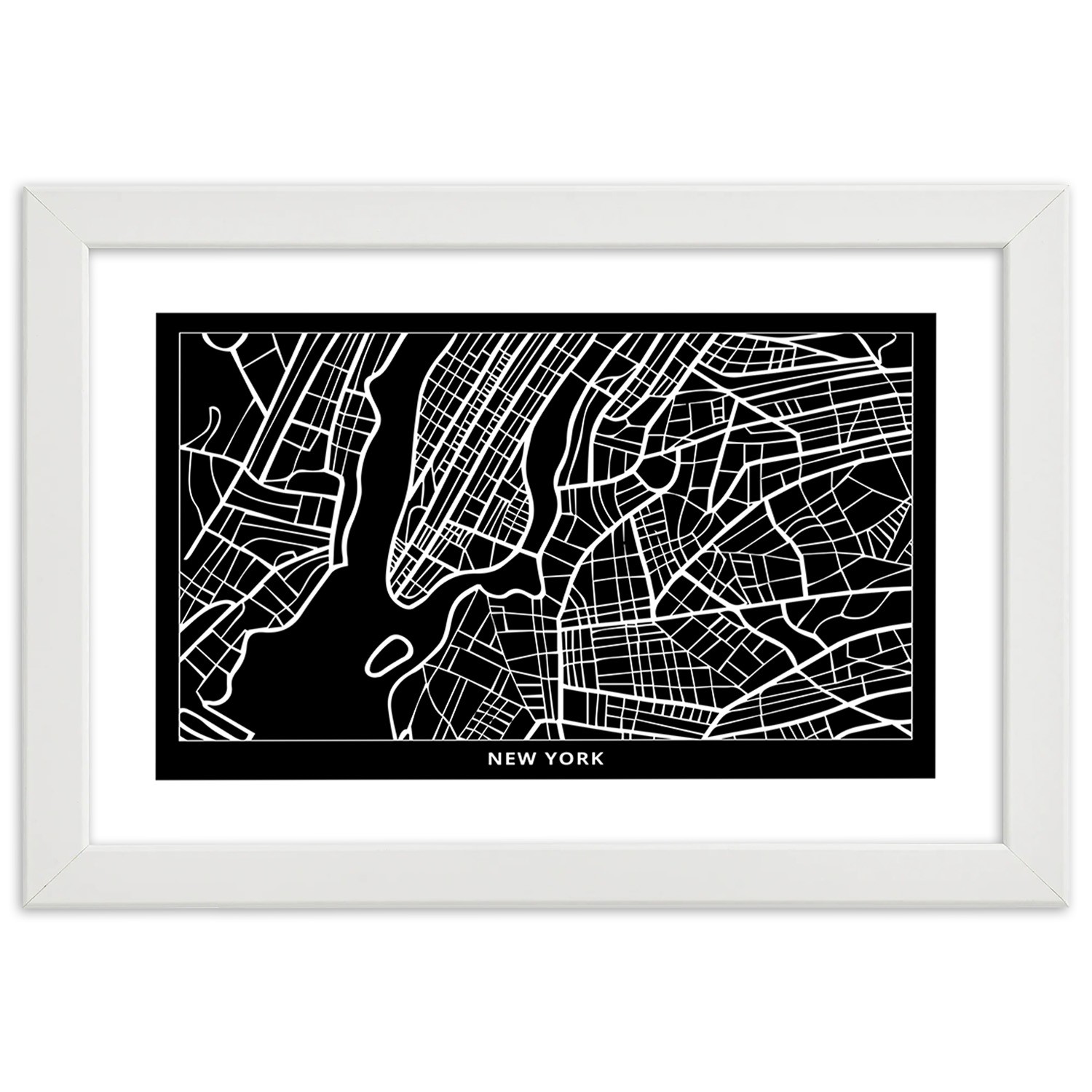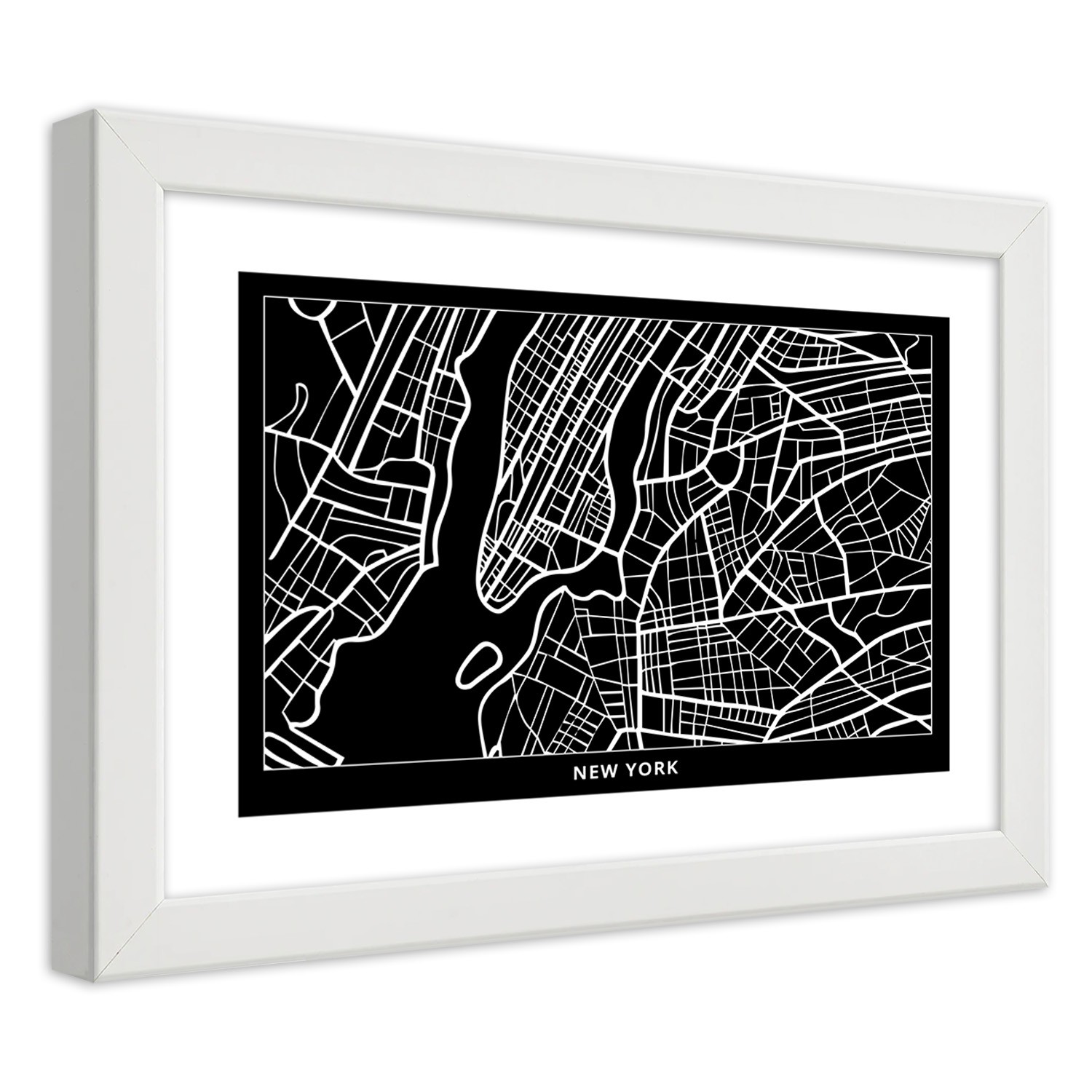 Informácie o výrobku "Rám vytlačený na saténovom papieri s dreveným rámom mapa mesta new york"