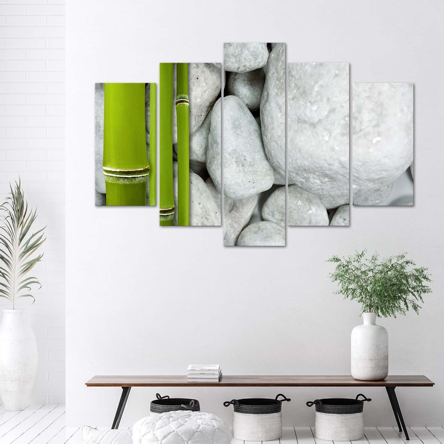 Informácie o výrobku "Rám z niekoľkých kusov tlačený na plátne s povrchovou úpravou šedej a zelenej farby"