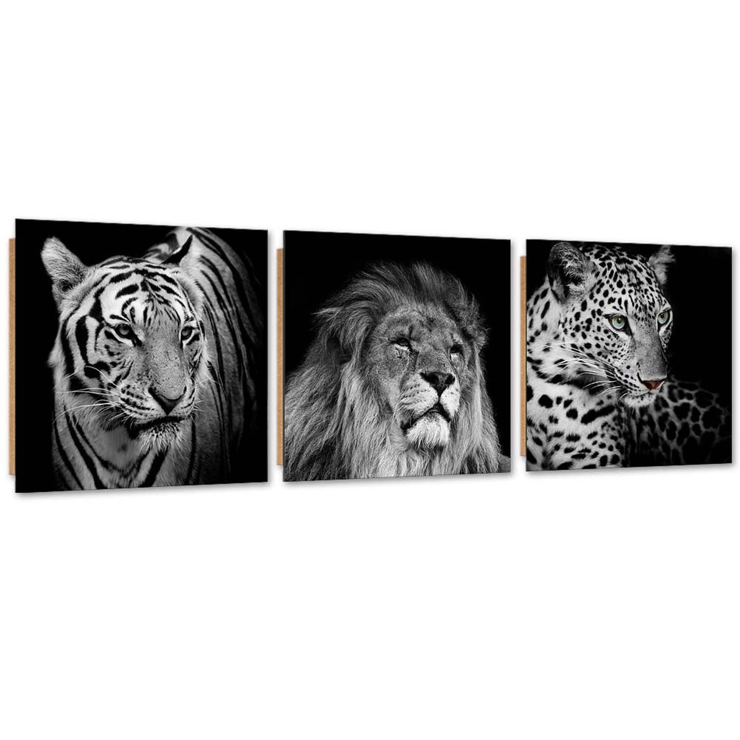 Informácie o výrobku "Sada troch závesných rámov v mdf plátne s potlačou dravých zvierat čiernej a bielej farby"