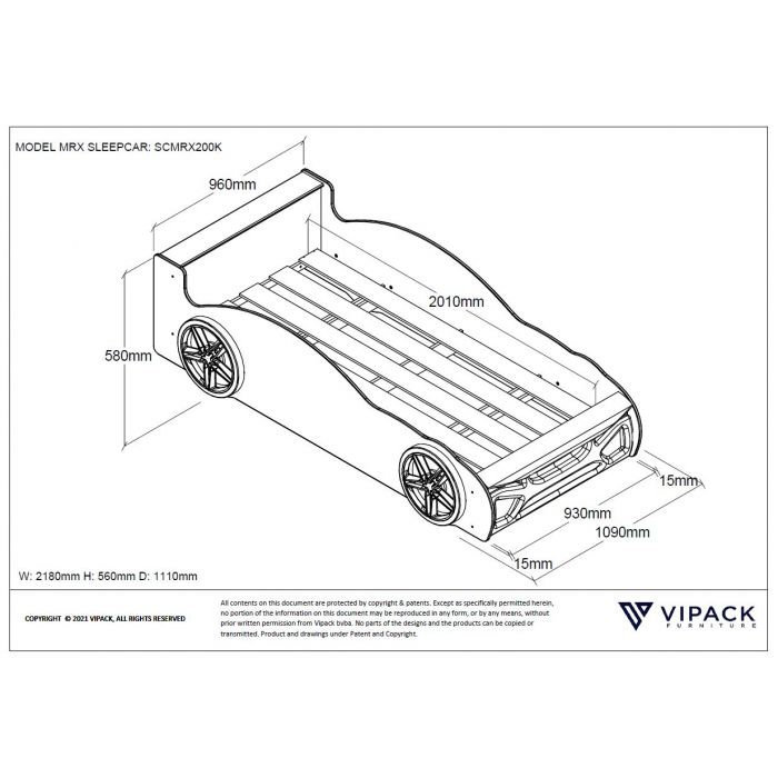 This MRX sleepcar made of lacquered MDF and a black and red detail made of plastic. The slatted base is included and is suitable for a mattress of 90x200cm.