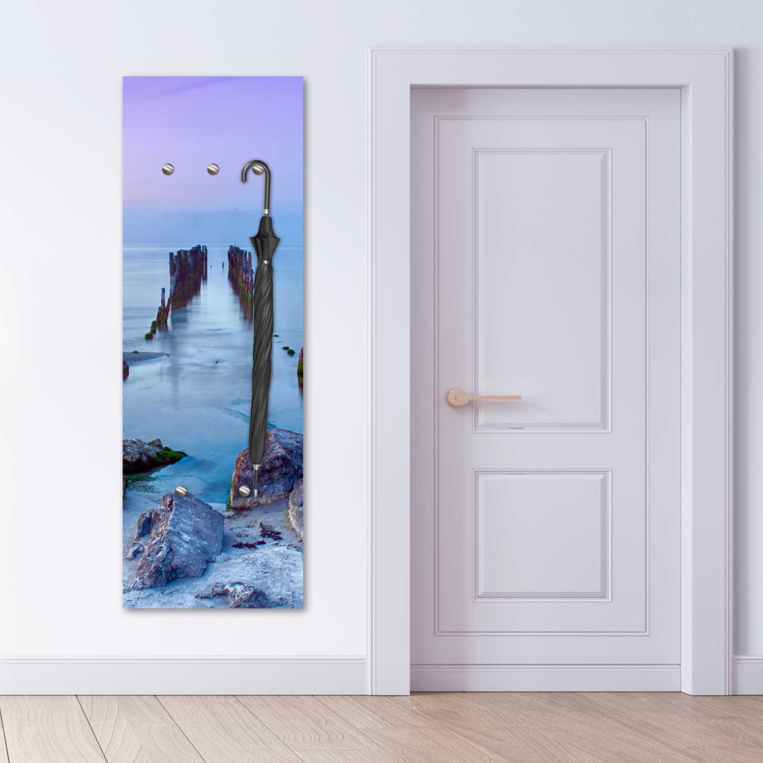 Product information "Coat rack made of fiberboard and satin paper with a drawing of an evening by the sea"