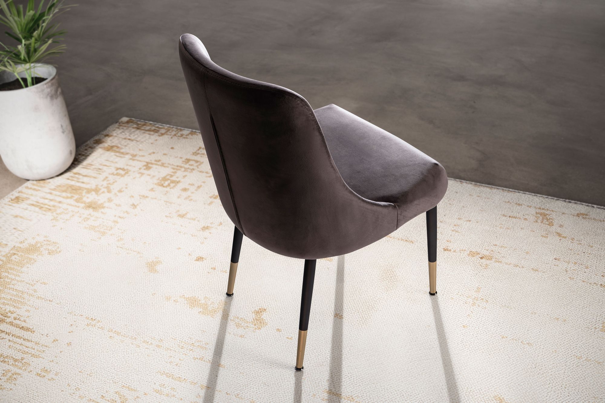 Prineste pohodlie a moderný štýl do jedálne s touto stoličkou zo sivého zamatového materiálu s pevnými čiernymi nohami. Operadlo obsahuje integrovaný vankúšik pre optimálnu oporu a dlhodobé pohodlie.