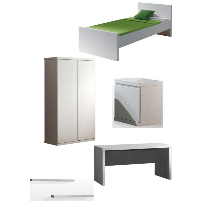 This single bed (90x200) from the LARA collection is made out of white lacquered MDF in combination with solid pine. The head and foot of the bed have horizontal grooves. The nightstand has 1 door with soft-close system. The 2 door wardrobe is also made out of white lacquered MDF and solid pine wood. Behind the left door there is a hanging compartment and 1 shelf, behind the right door there are 4 shelfs. There's a soft-close system on the doorsThe desk has a spacious worktop. You can also display you favorite toys on one of the 2 wall shelfs. The simple yet contemporary design makes it perfect for every kids or young adult bedroom