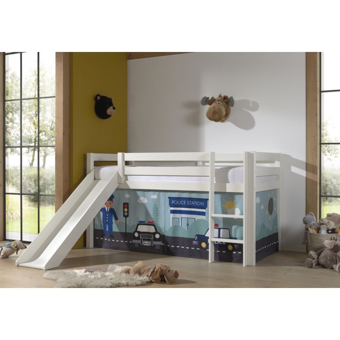 This PINO combination consists of the white mid sleeper with slide and POLICE curtain.