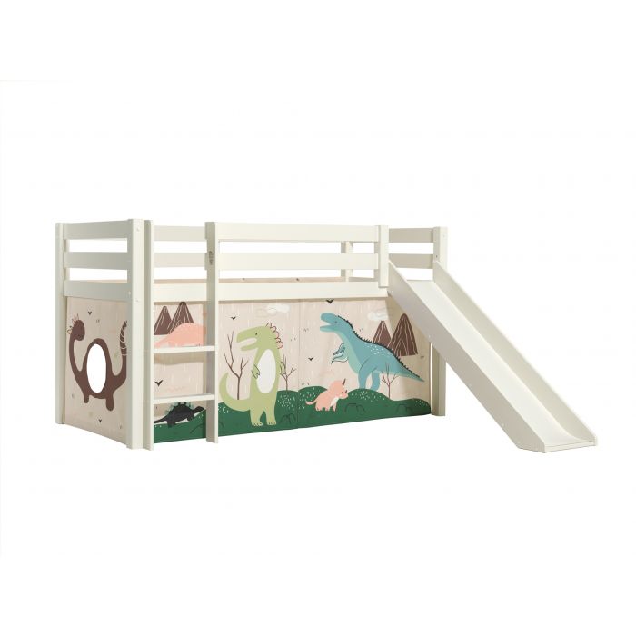 This PINO combination consists of the white mid sleeper with slide and DINO curtain.