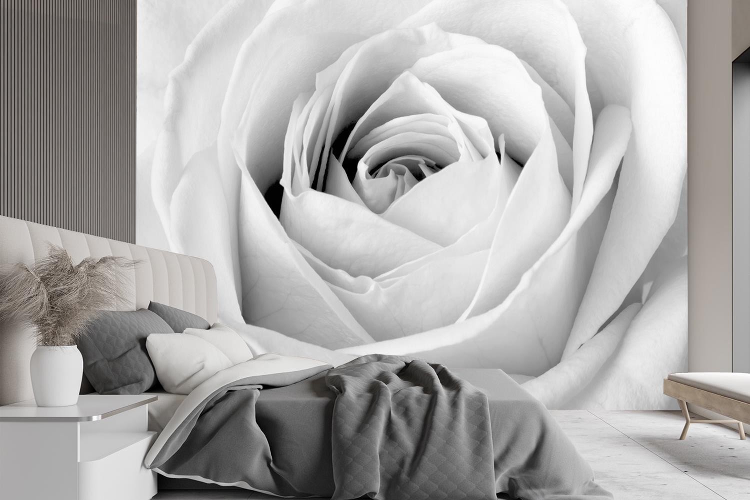 Foto na stenu do obývačky s obrázkom bielej ruže v čiernobielej farbe