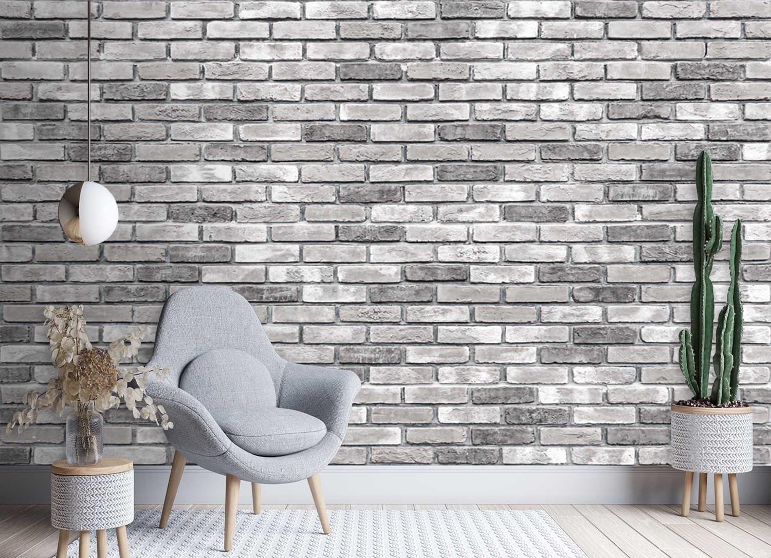 - Fotografická stena s obrázkom sivej tehlovej steny.