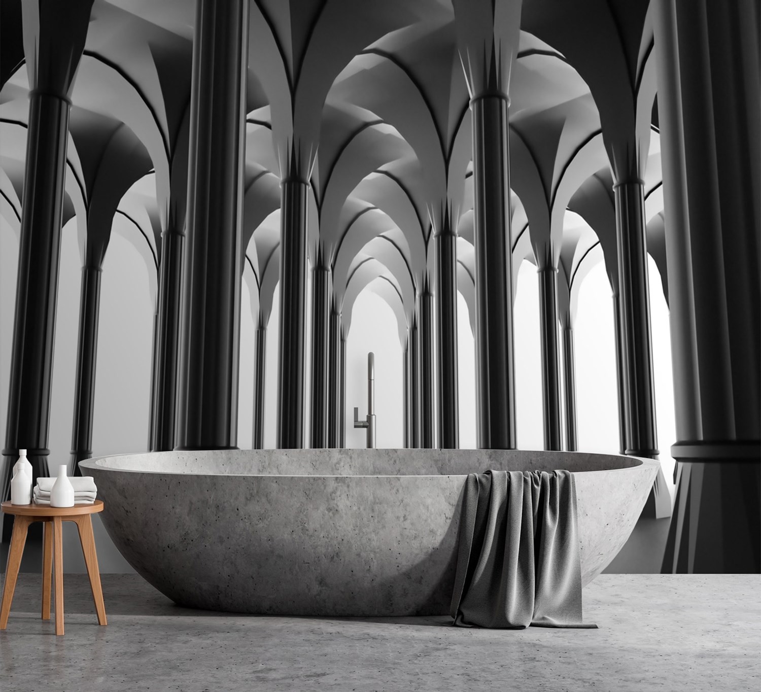 Tapeta tlačená na plátno lepidlom, sivá a biela povrchová úprava